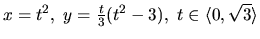 t \in \langle 0,2 \pi \rangle$, 224. $x = t^2,\ y = \frac{t}{3}(t^2 - 3),\
