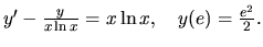 42. $y' - \frac{y}{x \ln x} =x \ln x,\quad y(e)=\frac{e^2}{2}.$