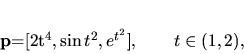 {\bf p}=[2t^4,\sin t^2, e^{t^2}], \qquad t \in (1,2),
