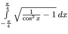 50. $\int\limits_{\frac{\pi}{4}}^{\frac{3\pi}{4}} \sqrt{\mbox{cotg}\,^2 x + 1}\,dx$, 51. $\int\limits_{-\frac{\pi}{4}}^{\frac{\pi}{4}} \sqrt{\frac{1}{\cos^2 x} - 1}\,dx$,