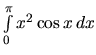 62. $\int\limits_{0}^{\pi} x^2 \cos x\,dx$, 63. $\int\limits_{0}^{\frac{\pi}{2}} e^x \sin x\,dx$,